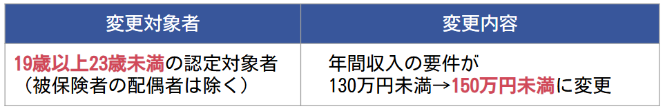 被扶養者としての届出にかかる家族(以下、認定対象者)について、認定要件が以下のように変更されました。